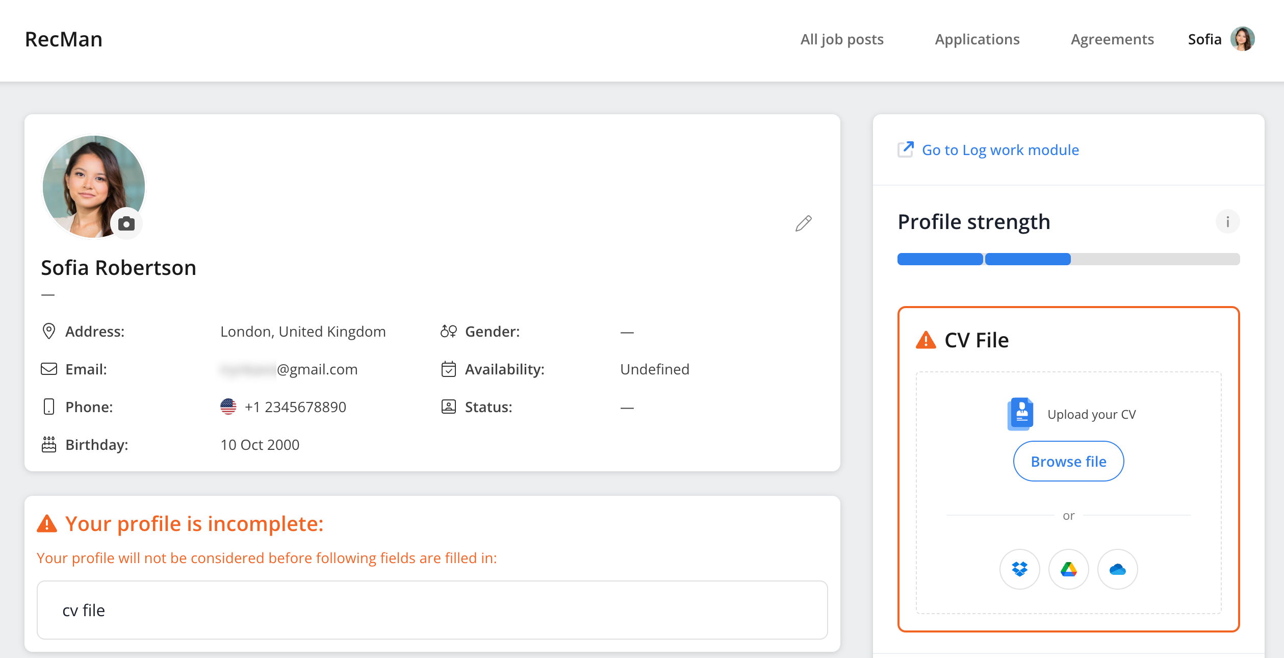 In practice, this means that the candidate profile will not be visible for RecMan users in the candidate database until the profile is completed. However, you can filter for incomplete profiles in the Compliance module.