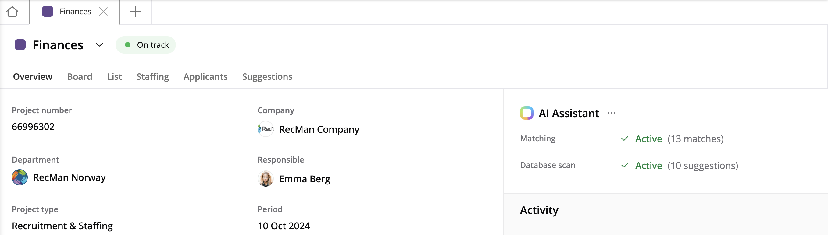 This article describes RecMan Intelligence features such as AI matching and AI database scan in recruitment projects.