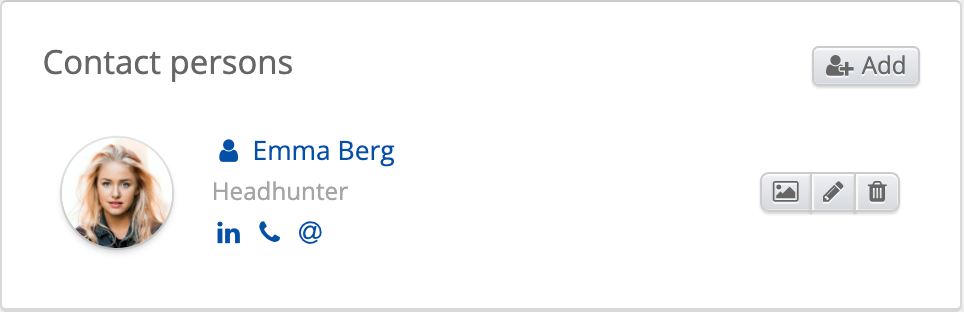 The information that is now filled in comes from your co-worker’s profile. You can, of course, change this, e.g., remove the mail address or phone number. Once the information is to your liking, click the green button Add contact person.