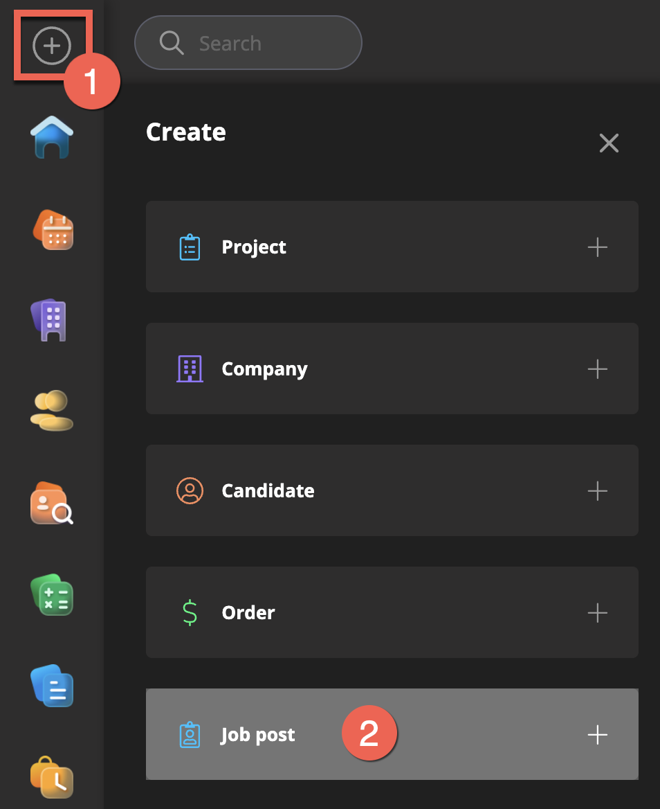 To create a new Job post, go to the main menu and click + to create a new job post.