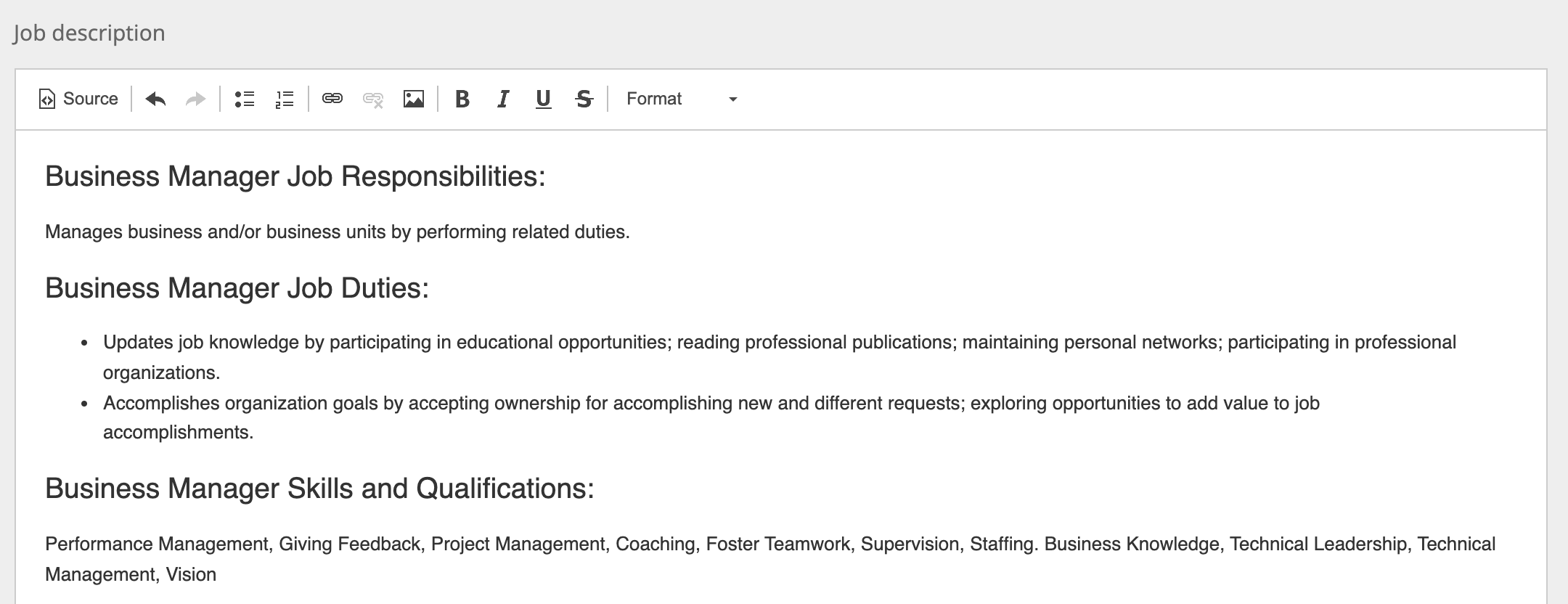 A job posting may also be created based on a previous ad, a template or information collected from a specific customer or department.