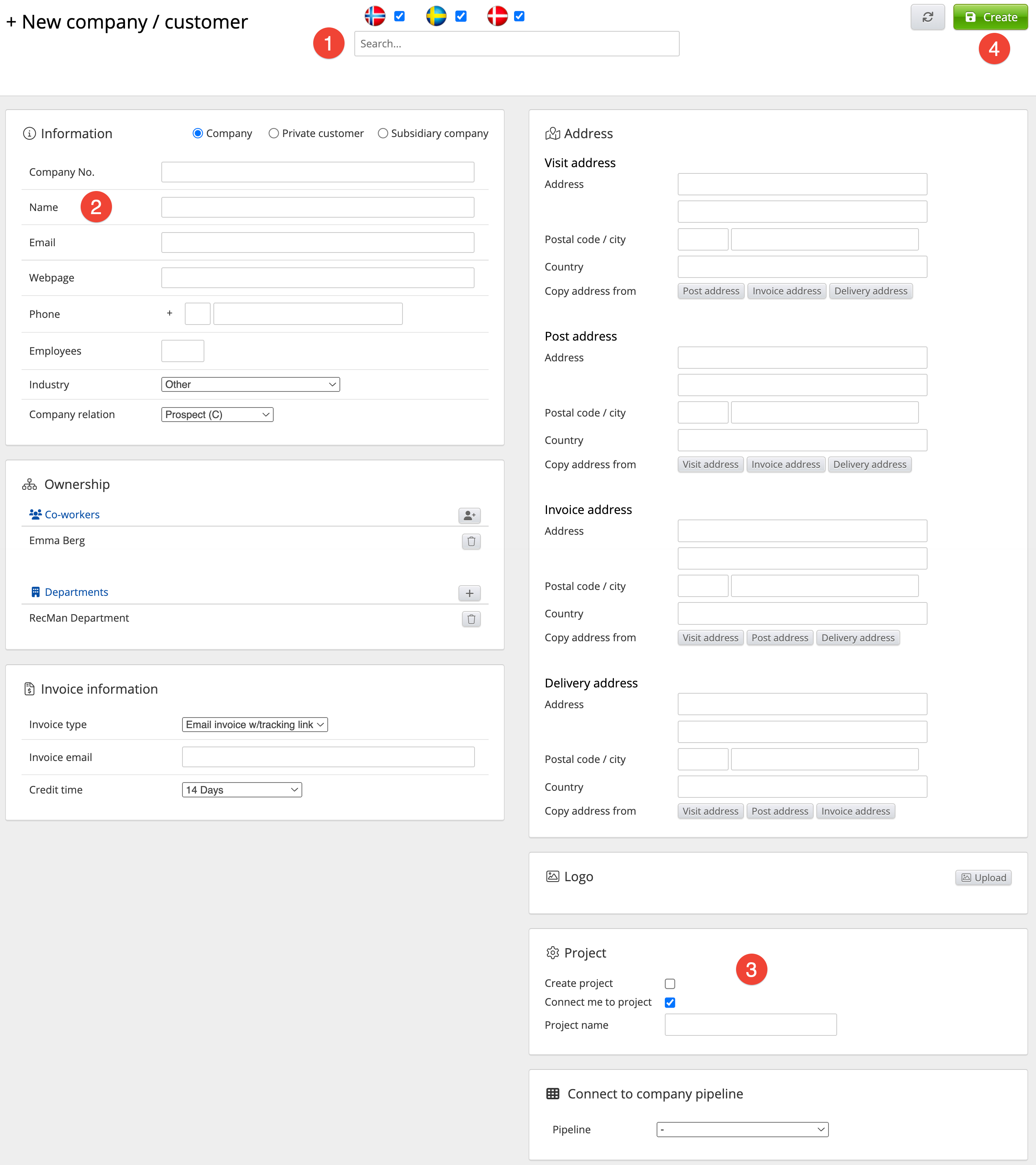 The information you enter must be correct, so please review the information before creating the company. If the added data is wrong, you may encounter issues, for example, when you are sending out an invoice.