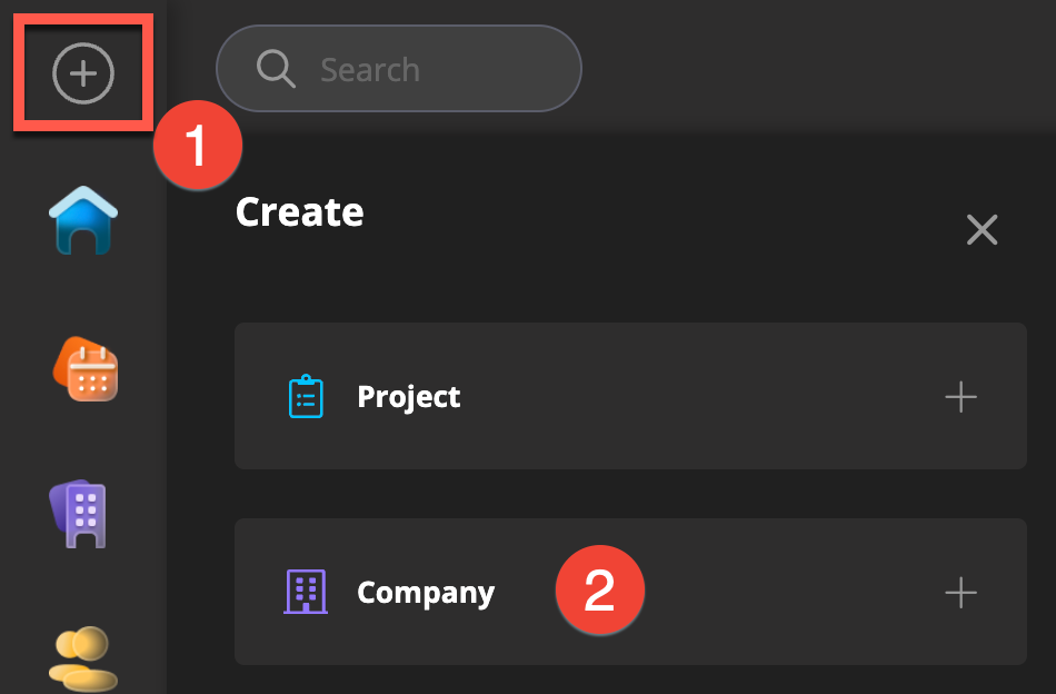 Click on the Plus button in the upper left corner to start adding a company to your CRM.