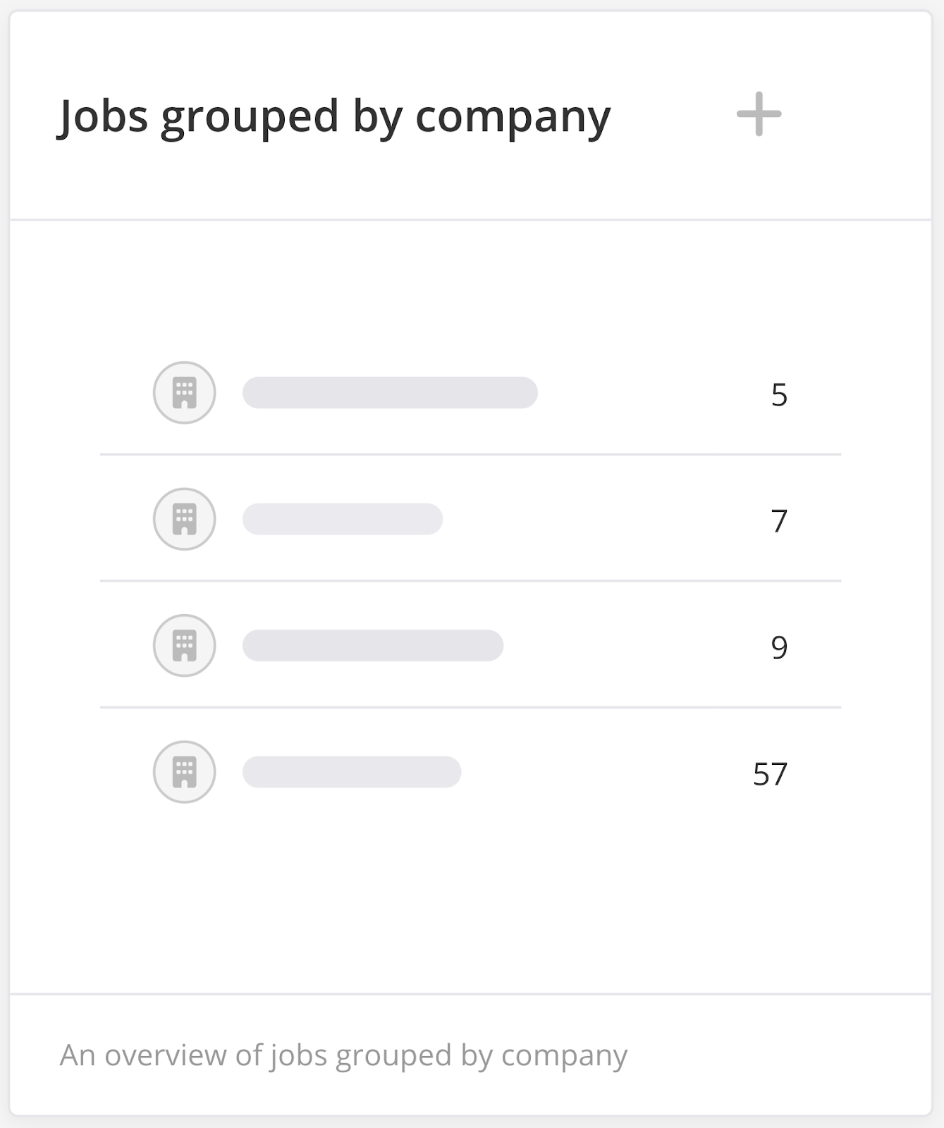 The Jobs grouped by company widget shows an overview of jobs grouped by company.