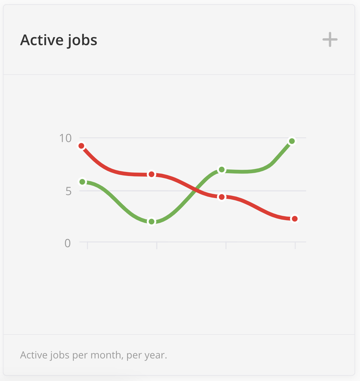 From the left side (Y-axis), there are rounded numbers of active jobs, starting from 0. From the bottom line (X-axis), months are shown, starting from Jan and ending with Dec.