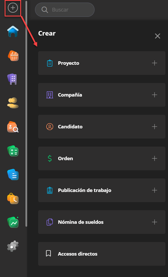 En la esquina superior izquierda, puede ver un ícono más que brinda la posibilidad de crear fácilmente varias entidades como proyectos, empresas, etc.