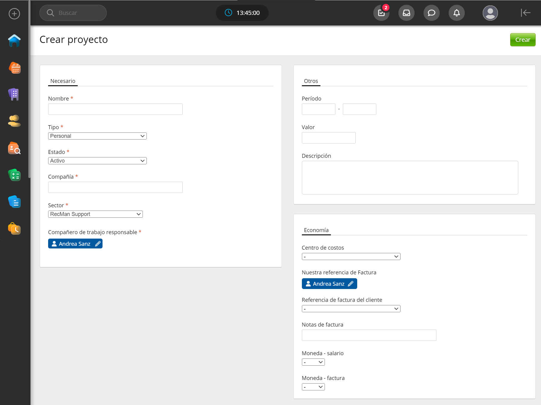 RecMan se basa en proyectos. Ya sea que esté creando una solicitud, una nueva selección de personal, una asignación de contratación o una publicación de trabajo, esto requiere un proyecto al final. Esto es para realizar un seguimiento de todo en el sistema.