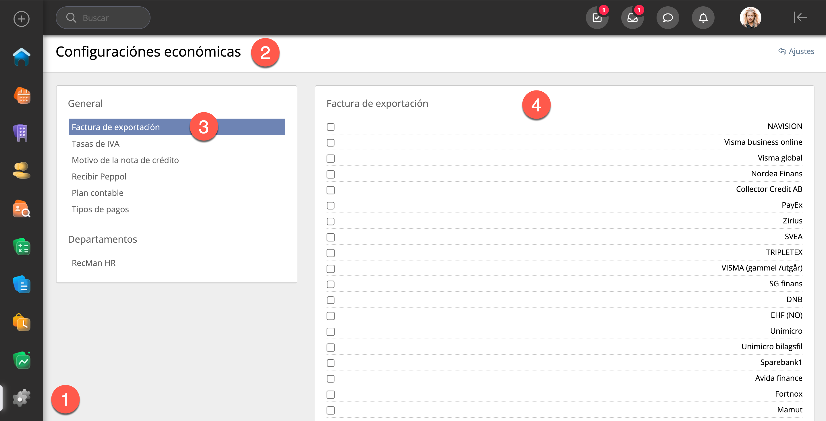 - Exportación de facturas