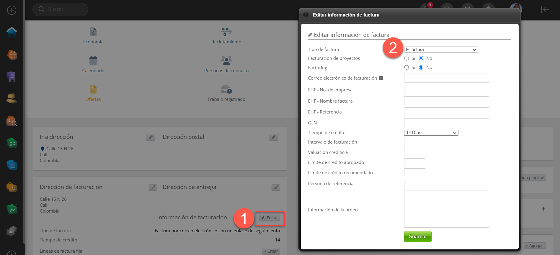 Una vez hecho esto, puede elegir la opción de E-factura en todas las empresas de tu CRM o al crear una nueva empresa.