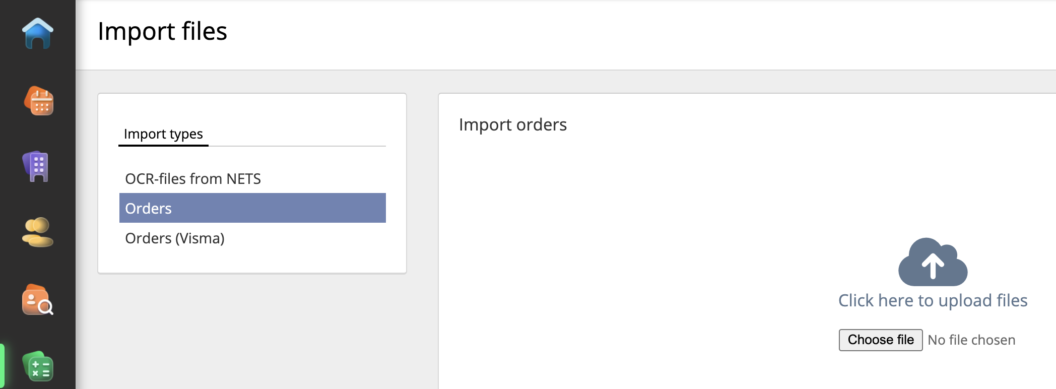 En RecMan, existe una opción para importar pedidos desde una fuente externa. Seleccione Pedidos en el menú y cargue el archivo XML para cargar los pedidos.