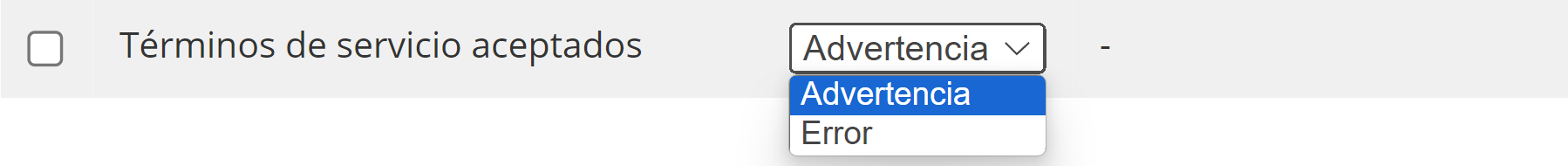 En este resumen, puede ver sus opciones de validación. Cada opción puede habilitarse/deshabilitarse sin afectarse entre sí, y puede elegir qué opción debe tener mensajes de advertencia o de error.