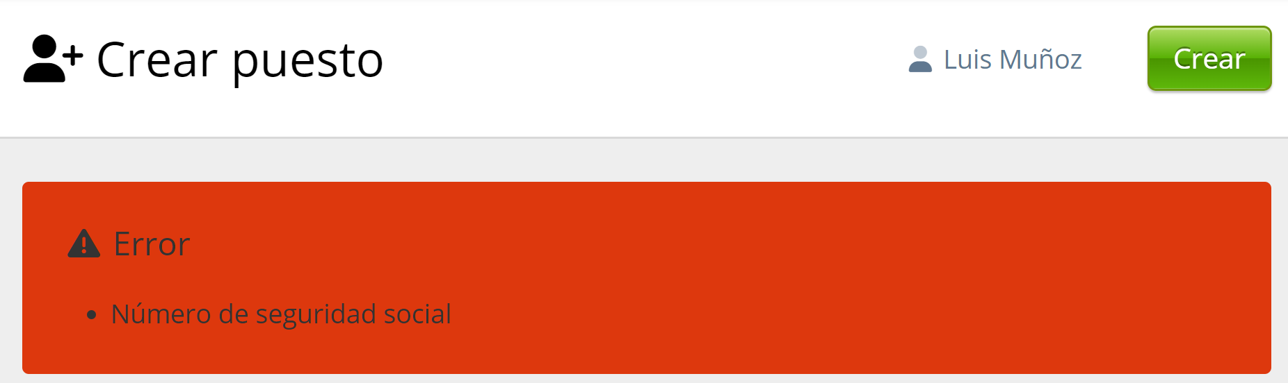 El trabajo aún puede crearse aunque la validación haya fallado porque elegimos Advertencia. Si hubiéramos elegido validar el número de Seguro Social como un error, el proceso no podría completarse y aparecería el error a continuación.