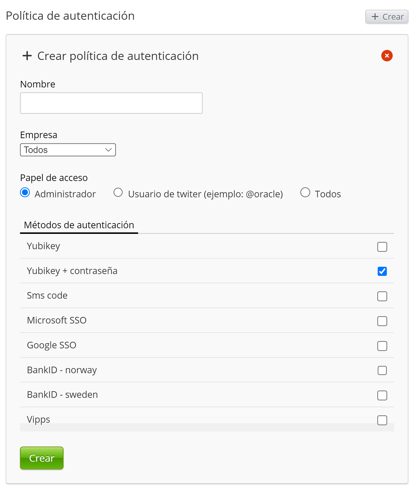Si desea permitir que los usuarios autentiquen su cuenta con BankID, primero debe activarse aquí. Esta característica incluye tanto BankID en dispositivos móviles como con un chip de código que genera un código único. Próximamente, se lanzará la opción de tener tales métodos de autenticación para la firma de documentos también.