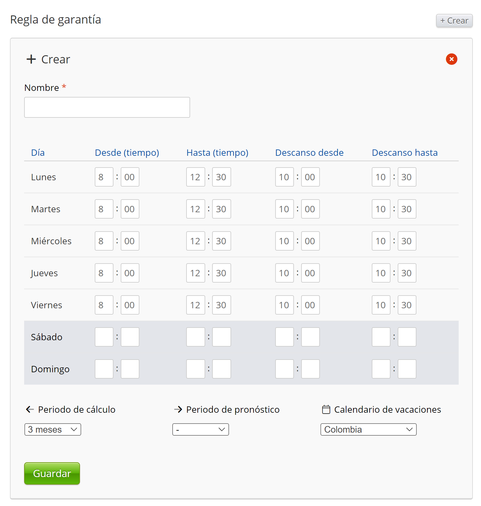 Antes de comenzar a configurar el empleo para los empleados, es necesario establecer una regla de garantía. Dicha regla ayudará al sistema a calcular los porcentajes que indicarán y notificarán las obligaciones que uno tiene con los empleados. Esto proporcionará una visión general de cómo proceder de acuerdo con estas obligaciones a través de las siguientes indicaciones: