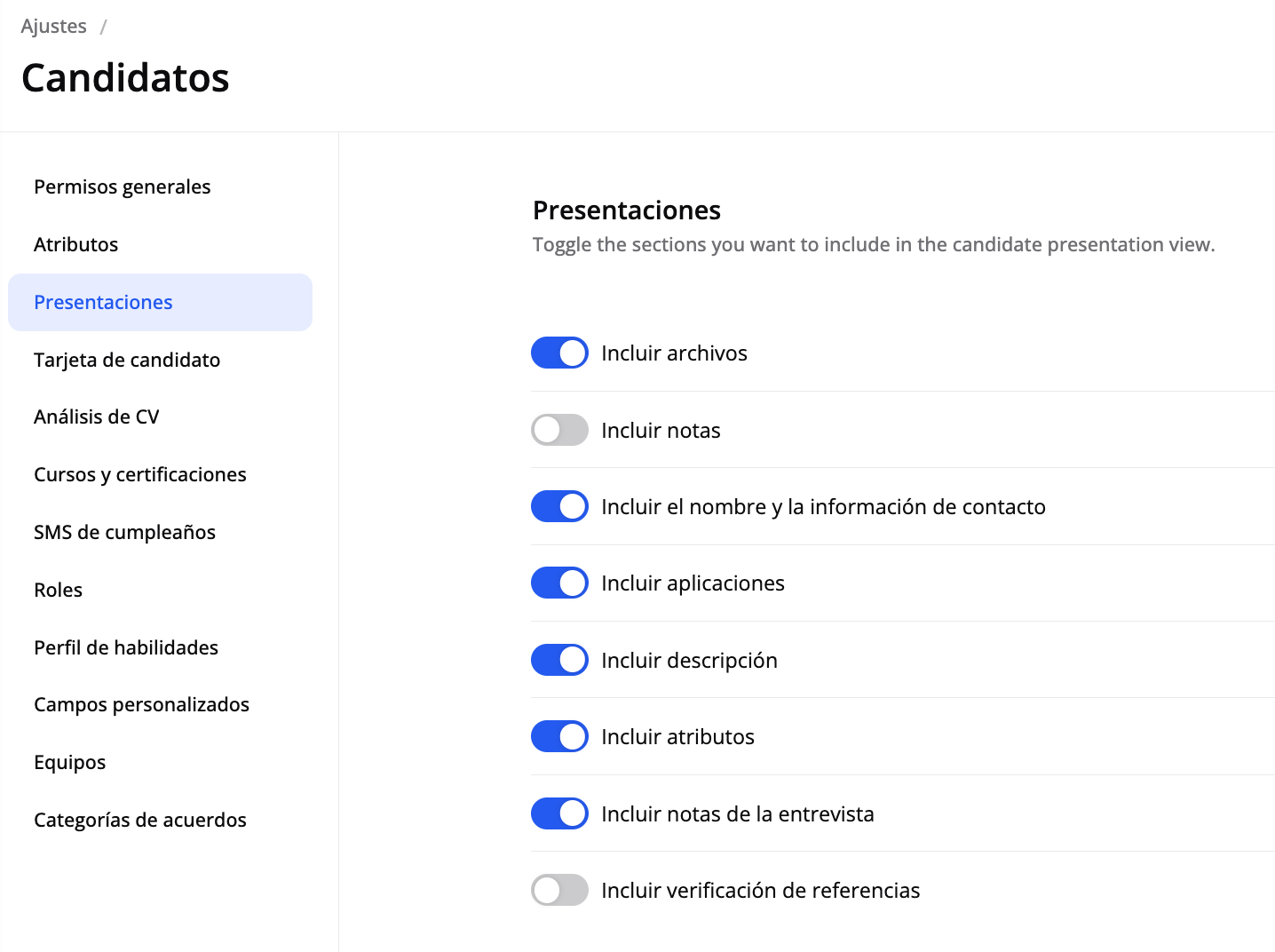 La selección predeterminada en este menú es algo que se define en la configuración del sistema. Póngase en contacto con el administrador del sistema o vaya a Configuración del sistema → Candidatos → Presentaciones para cambiar esto.