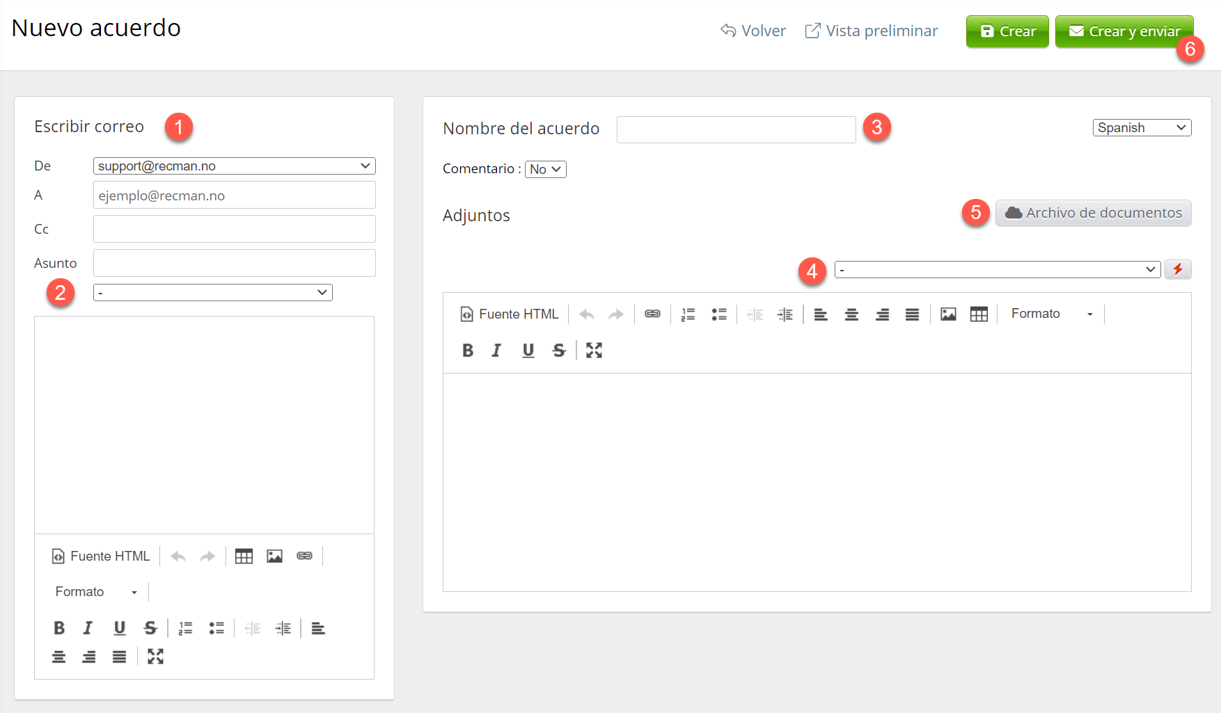 - Si desea adjuntar algún documento al acuerdo antes de enviarlo, puede hacerlo haciendo clic en este botón.