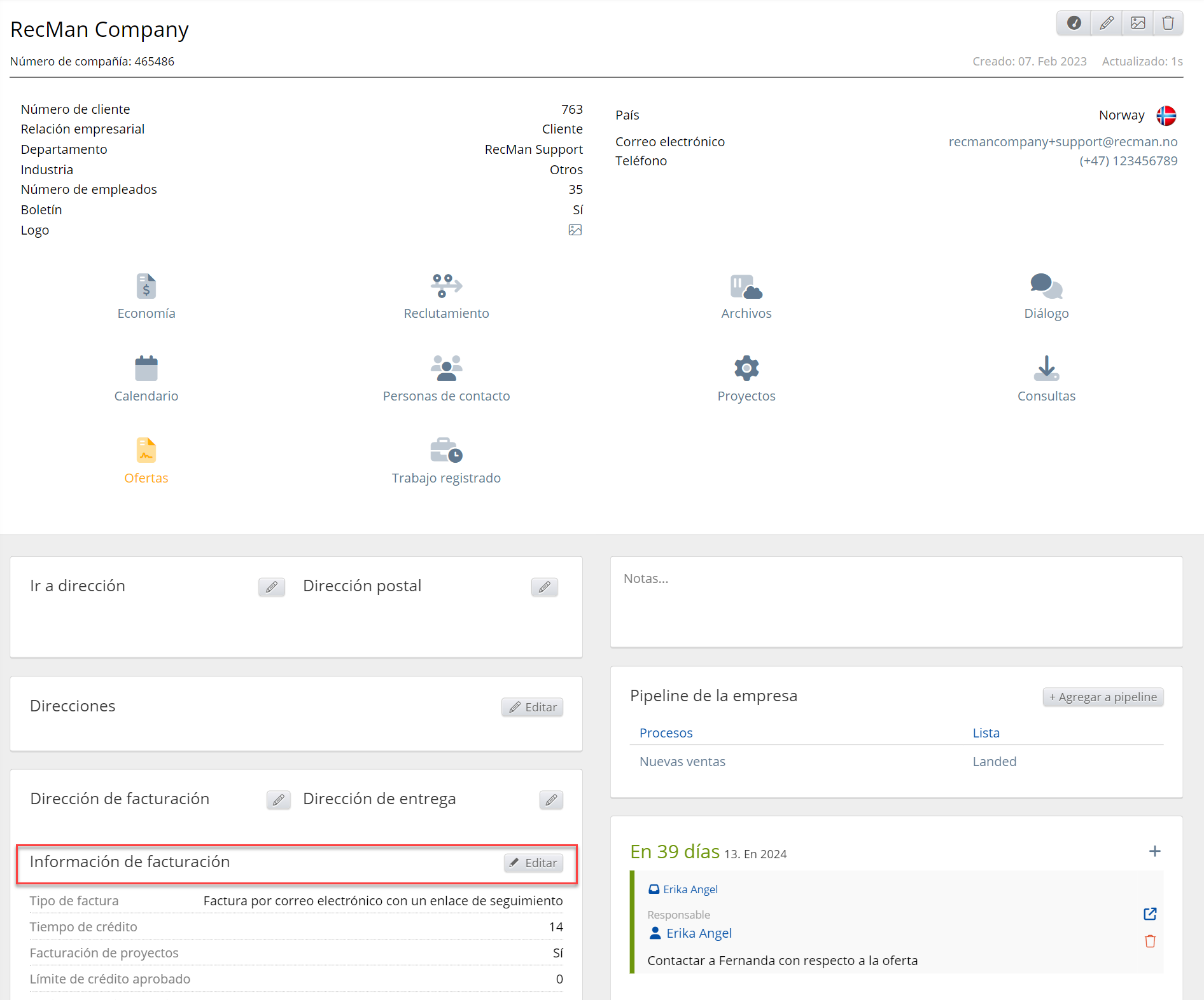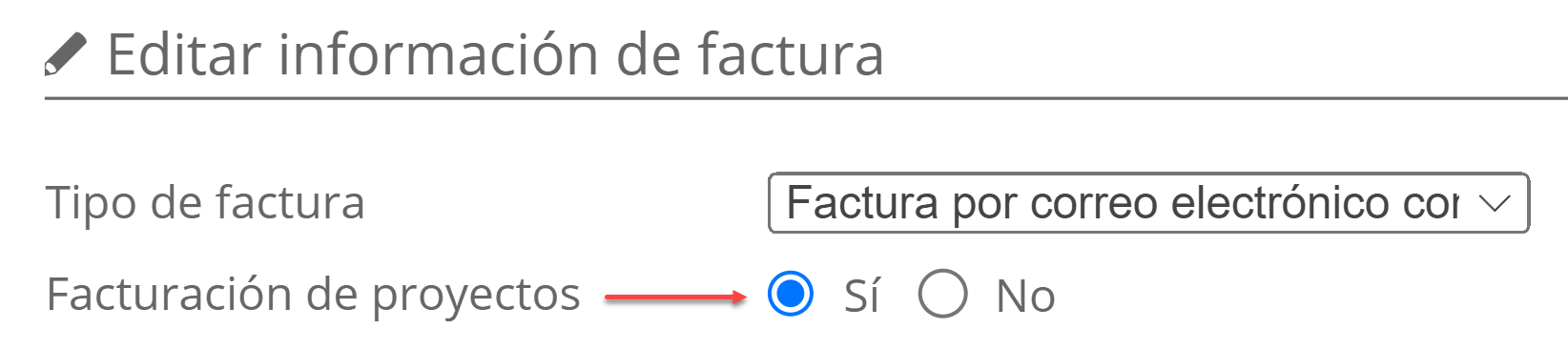 Pulse Editar y configure Facturación de proyectos en Sí.