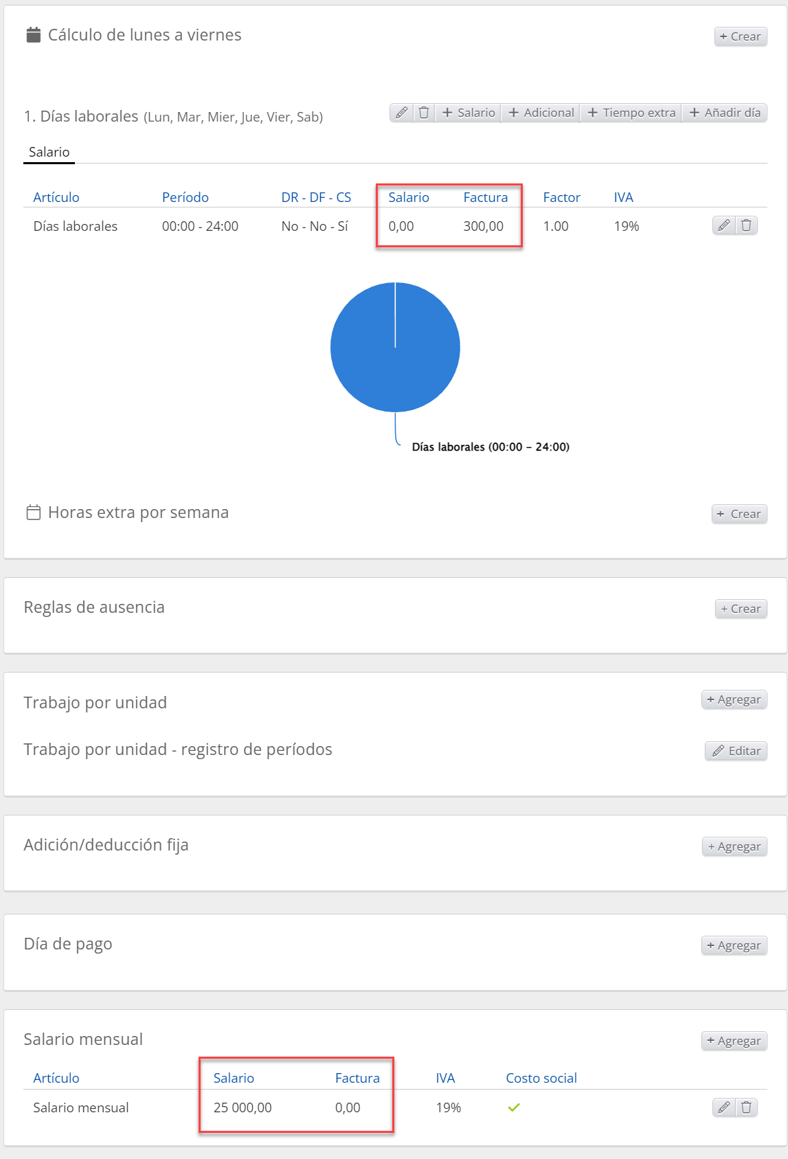Aquí lo más probable es que haya olvidado hacer una regla para uno o más de los días. Si, por ejemplo, creó una regla para los días de semana (lunes a viernes) y olvidó la regla para los sábados y/o domingos, tampoco podrá mantener las horas los sábados o domingos.