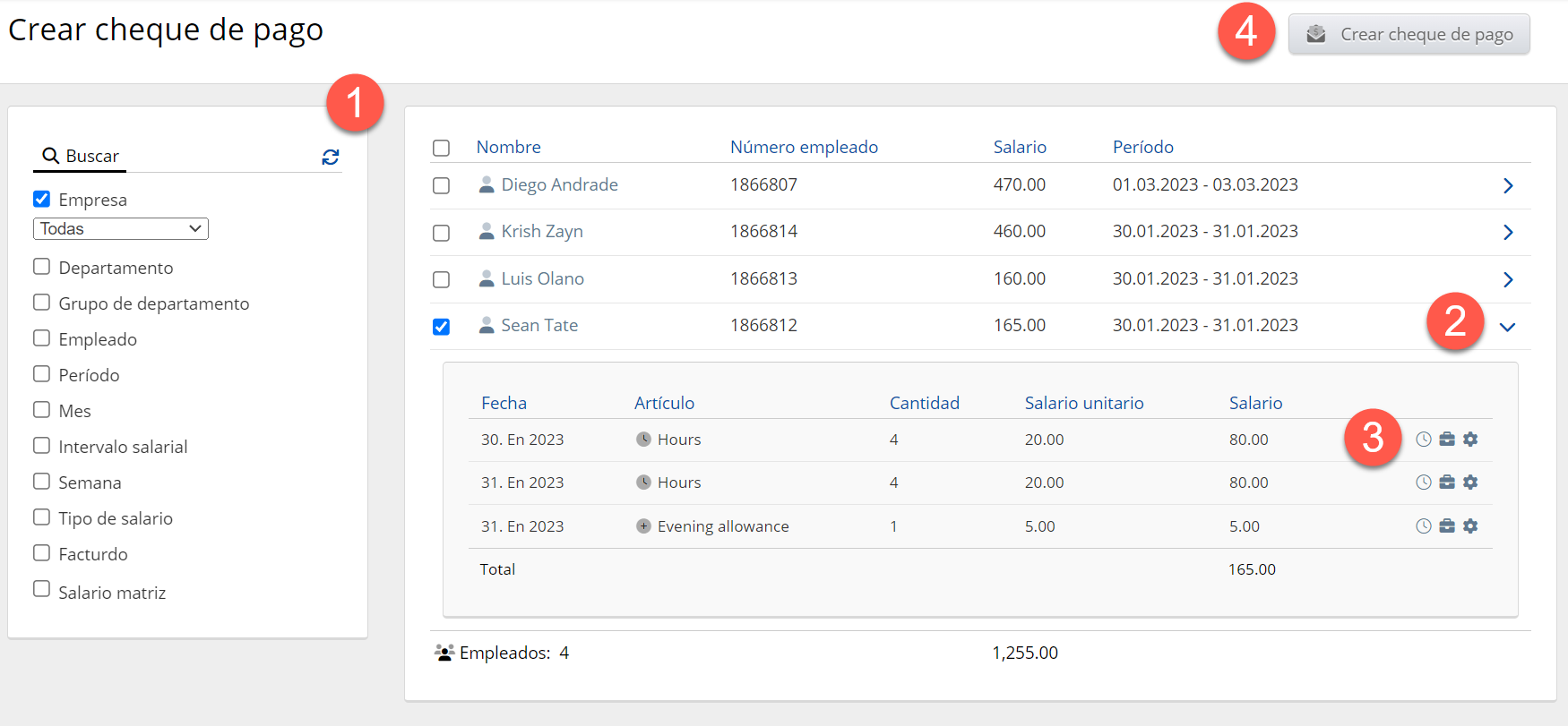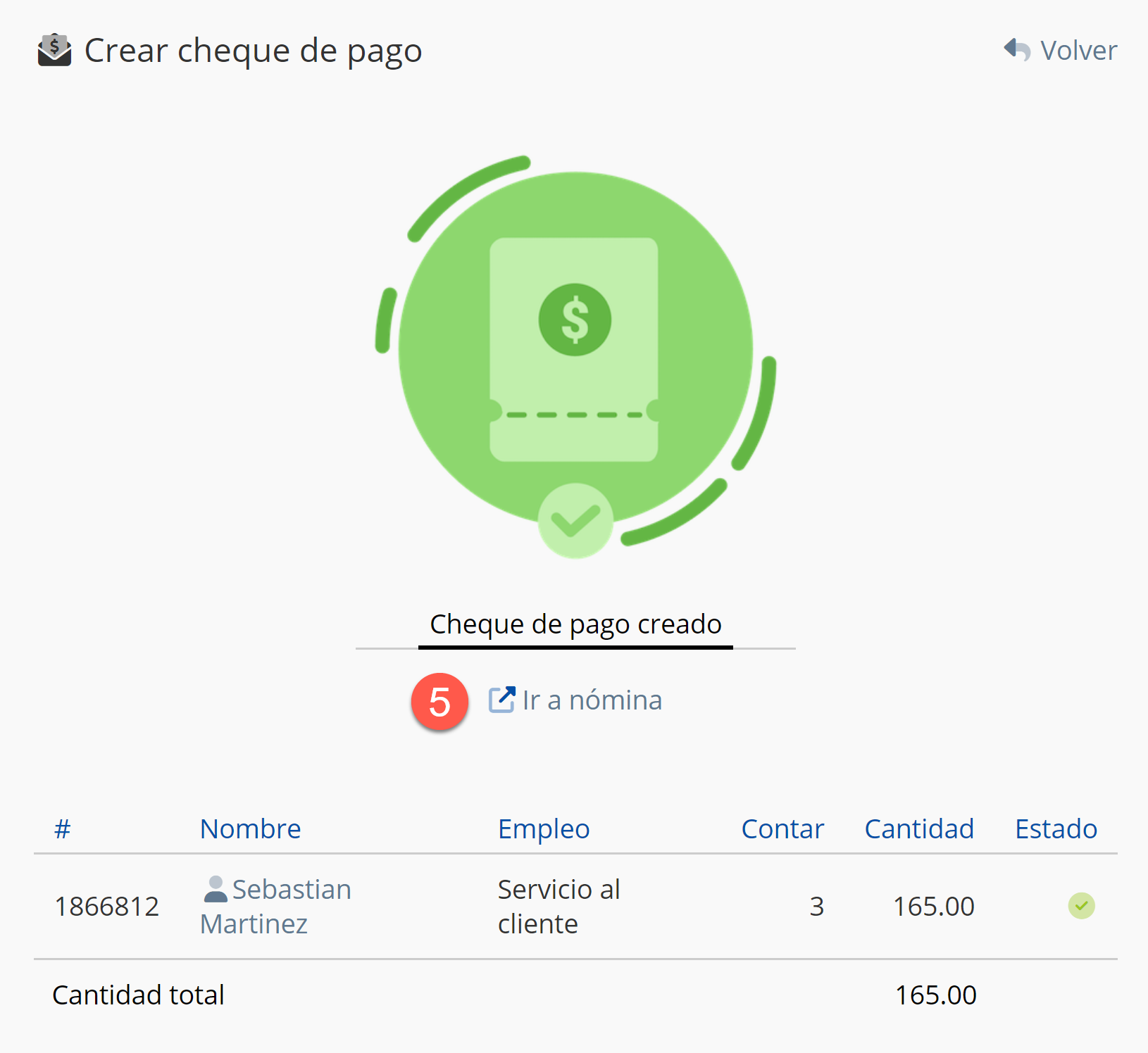 - Al hacer clic en esta flecha, verá los detalles de la nómina del empleado elegido.