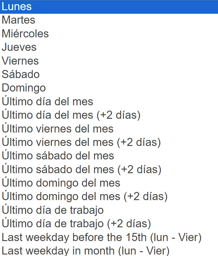 - Último día del mes: aquí puede elegir que el SMS solo se envíe una vez al mes el último día del mes. Puedes elegir el último día o el último día +2. También puedes elegir el último viernes, sábado o domingo del mes.