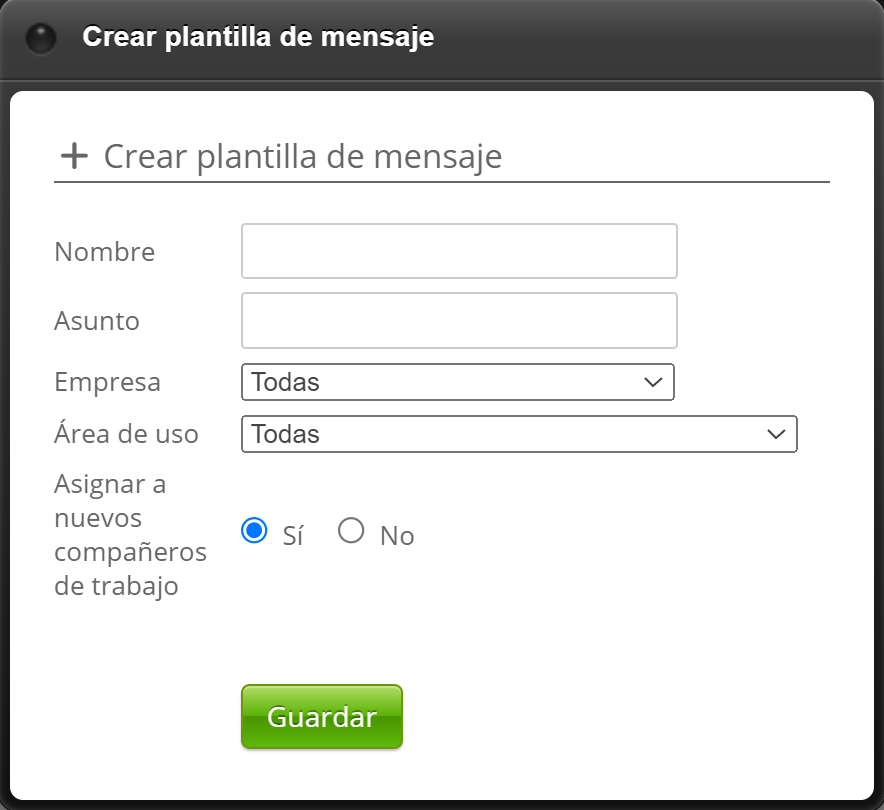 Nombre: El nombre de la plantilla. Ejemplo: "Mensaje a empleados".