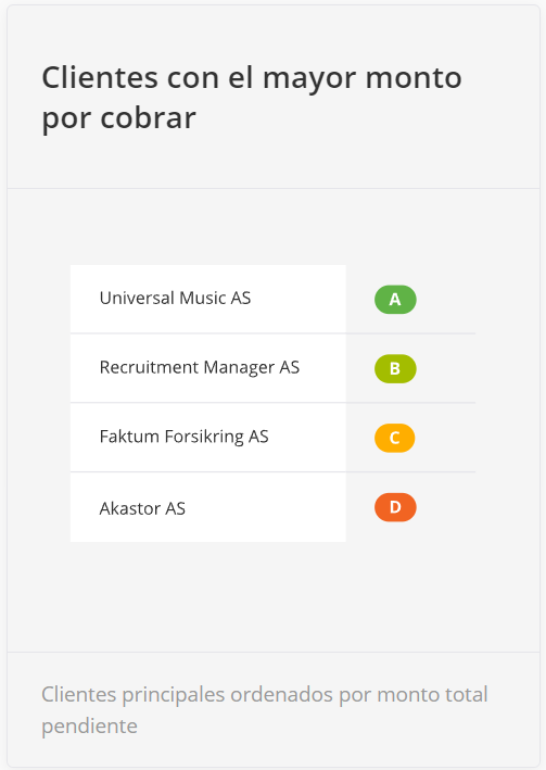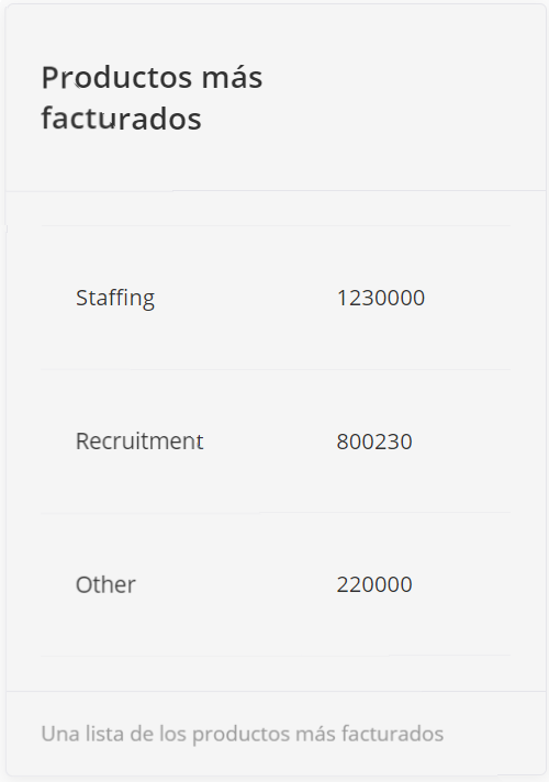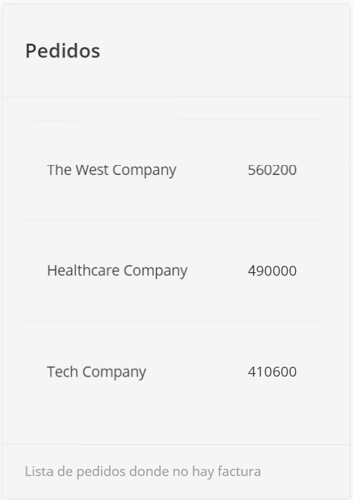 Este widget muestra los clientes más facturados de arriba a abajo. Al crear una orden, el usuario puede elegir un cliente. Después de facturar esta orden, los ingresos se contabilizarán para un cliente a partir de la orden. Los clientes se muestran en forma de lista, y aquellos con los mayores ingresos se mostrarán en la parte superior.