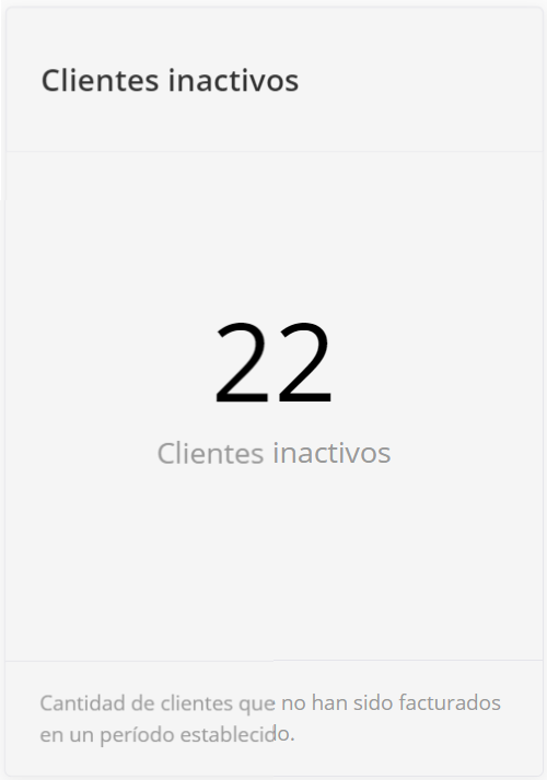 Este widget muestra el número de clientes no facturados en un período establecido. Información importante: El widget cuenta clientes que han sido facturados al menos una vez. Los clientes recién creados (sin órdenes facturadas) no se contarán en el widget.