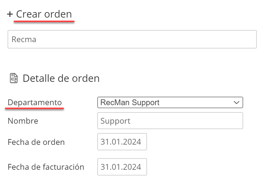 En caso de que el usuario elija el nivel de datos Departamento, entonces la lista de pedidos se mostrará según el departamento que se eligió al crear un pedido.