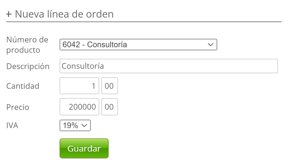 - Los productos se muestran debajo del campo de búsqueda 'Producto' después de seleccionarlos.