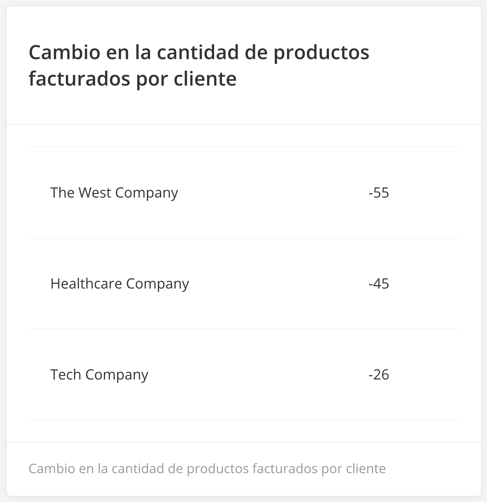 Widget de cambio en la cantidad de productos facturados por cliente