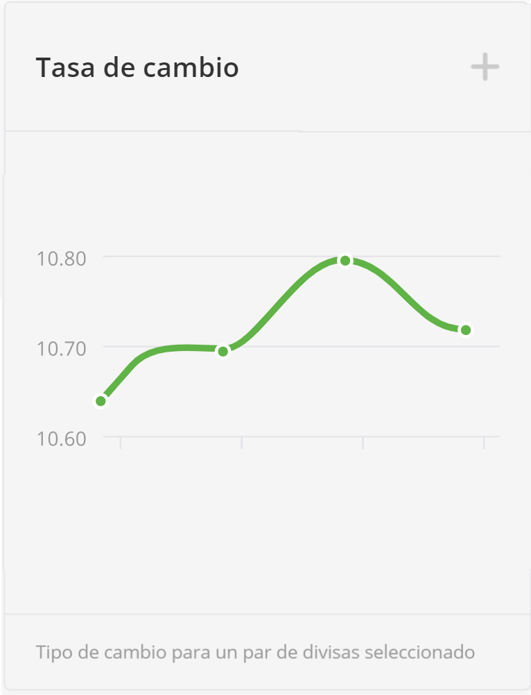Este widget muestra un gráfico con la tasa de cambio de la moneda para un par de monedas seleccionado (por ejemplo, NOK/USD) durante un período determinado.