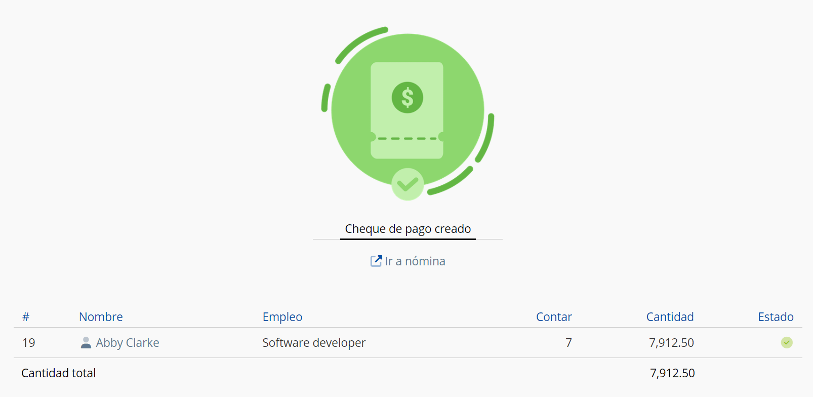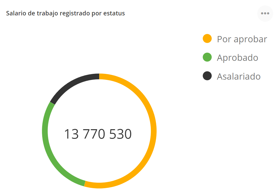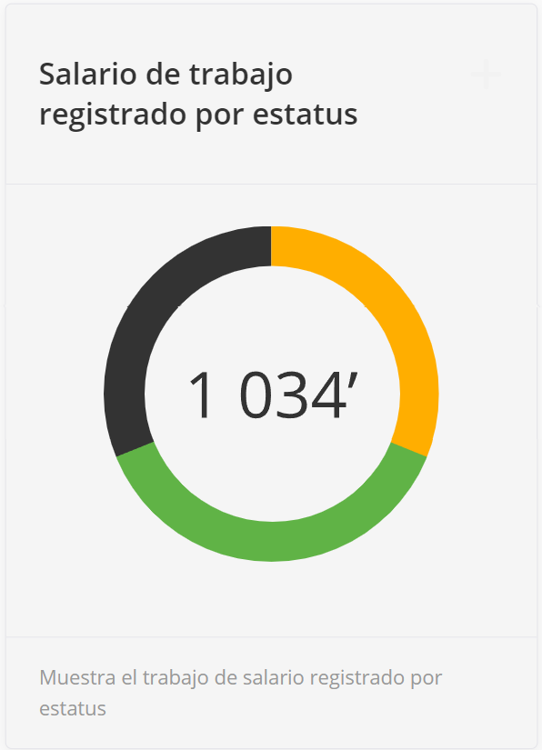 Este widget muestra el salario registrado y pagado a los empleados según los estados - "En aprobación", "Aprobado", "Salariado" y la suma total de todos los artículos.