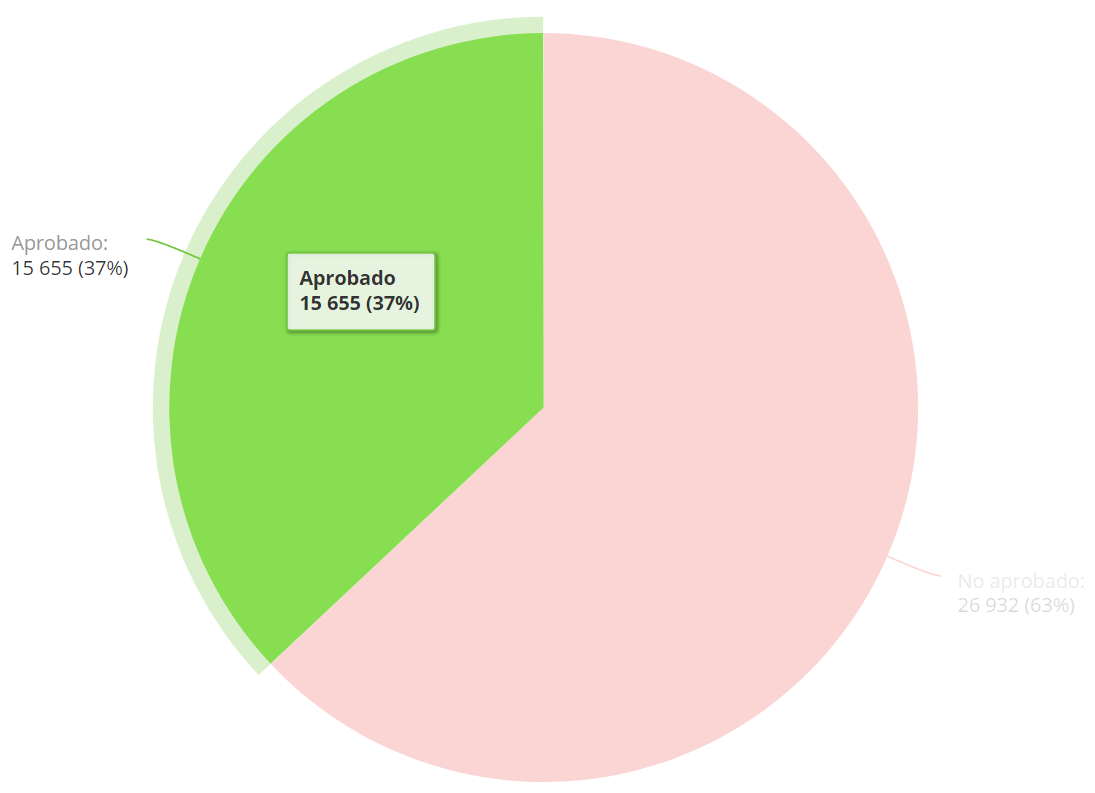 Se muestra un mensaje emergente (tooltip) al pasar el mouse sobre las secciones de Aprobado o No Aprobado en el widget: