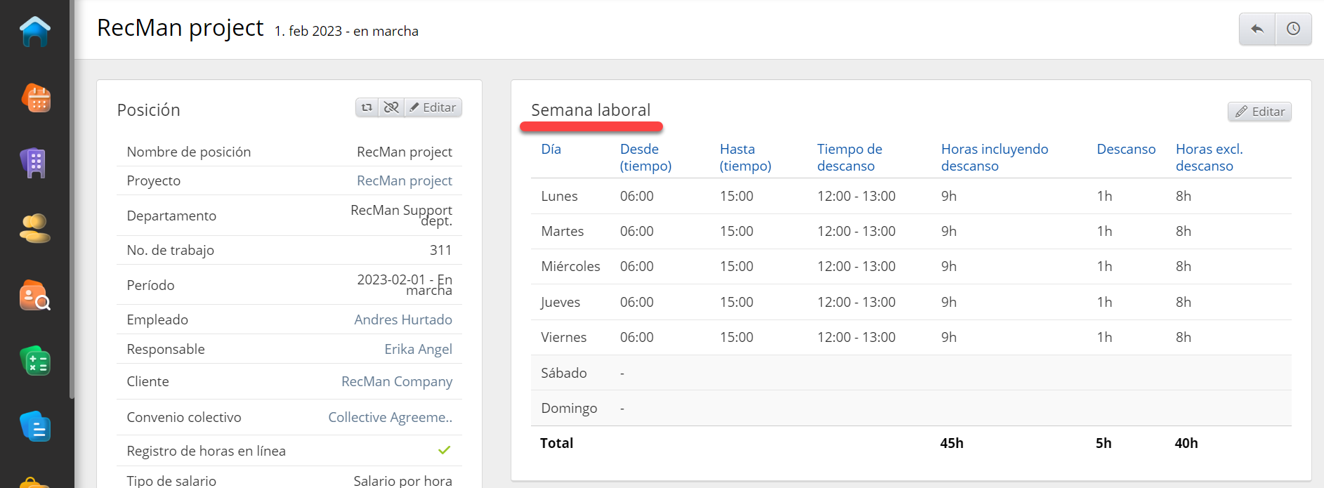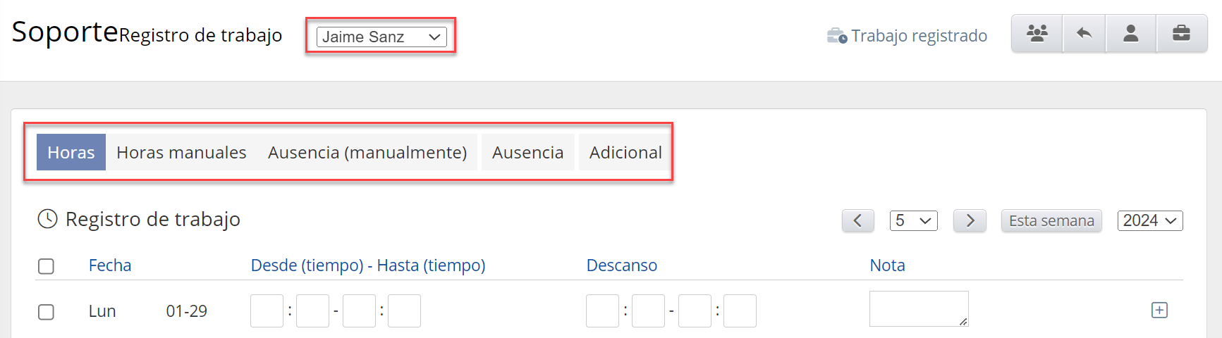 - Horas registradas