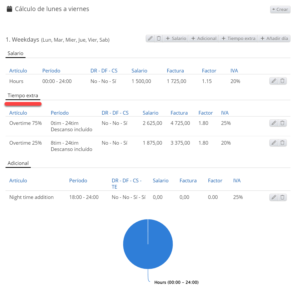 Las Horas extras se pueden establecer aquí. Cuando se establecen las Horas extras, estas horas se contarán en caso de que los candidatos registren más horas de las establecidas en la semana laboral.
