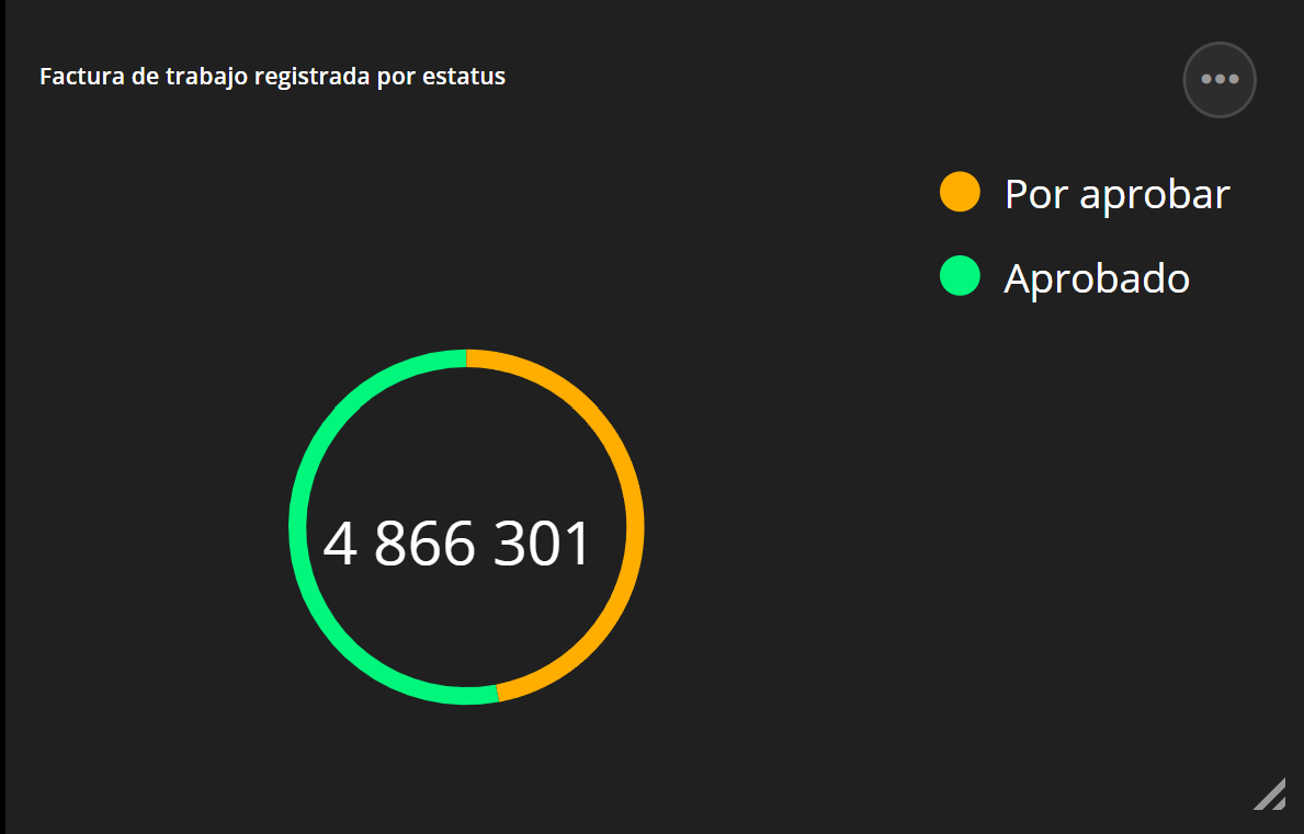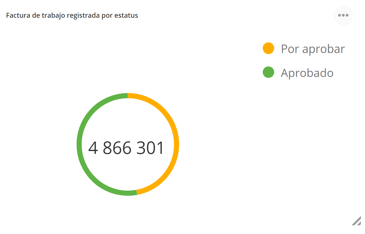 Este widget muestra el valor para el trabajo registrado que ha sido aprobado y el que no ha sido aprobado.