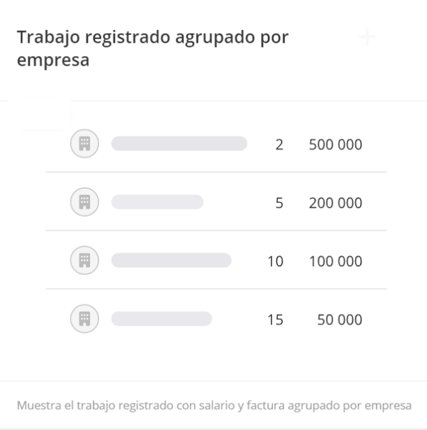 El widget muestra el trabajo registrado con los valores totales de salario e invoice por empresa.