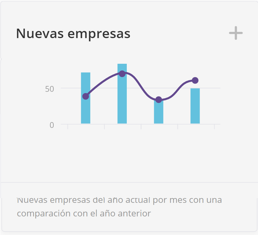 Este widget muestra las nuevas empresas/clientes para el año actual por mes en comparación con el año anterior.