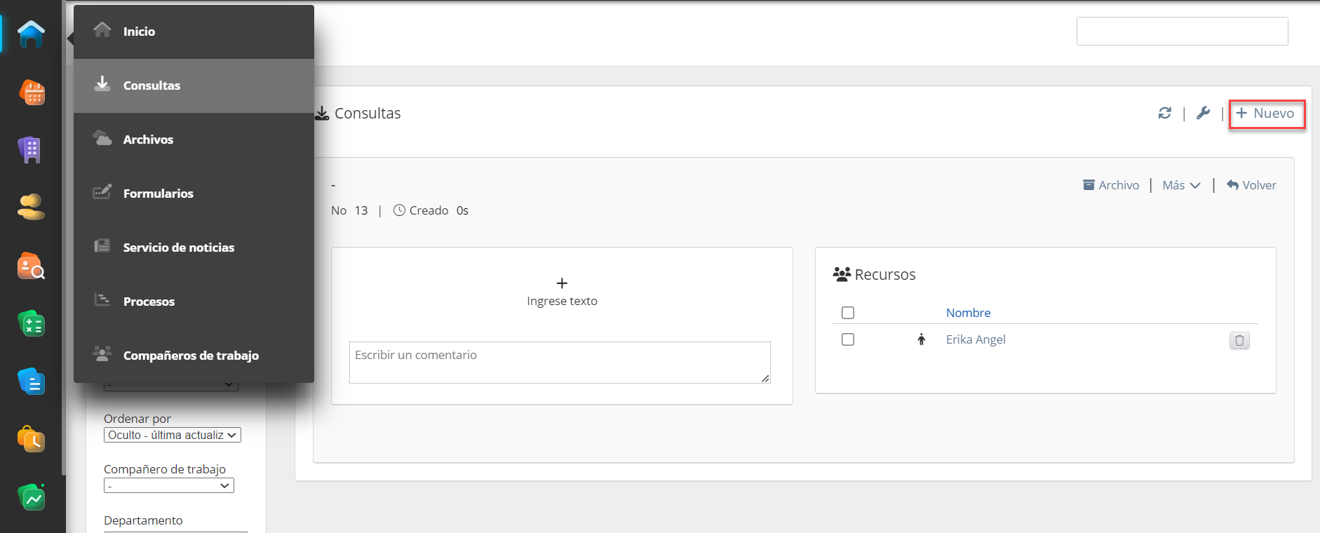 - Departamento (menú desplegable): Dinámico (predeterminado), Elegir múltiples, Corporaciones/Departamentos/Compañeros específicos