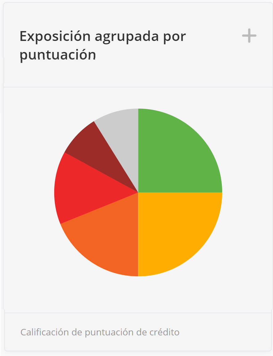 Este widget muestra la "exposición" de un usuario hacia empresas con una calificación baja. El widget recopila todas las facturas y las agrupa según la calificación del cliente. Cuenta las facturas de trabajos y agrupa este valor según la calificación del cliente.