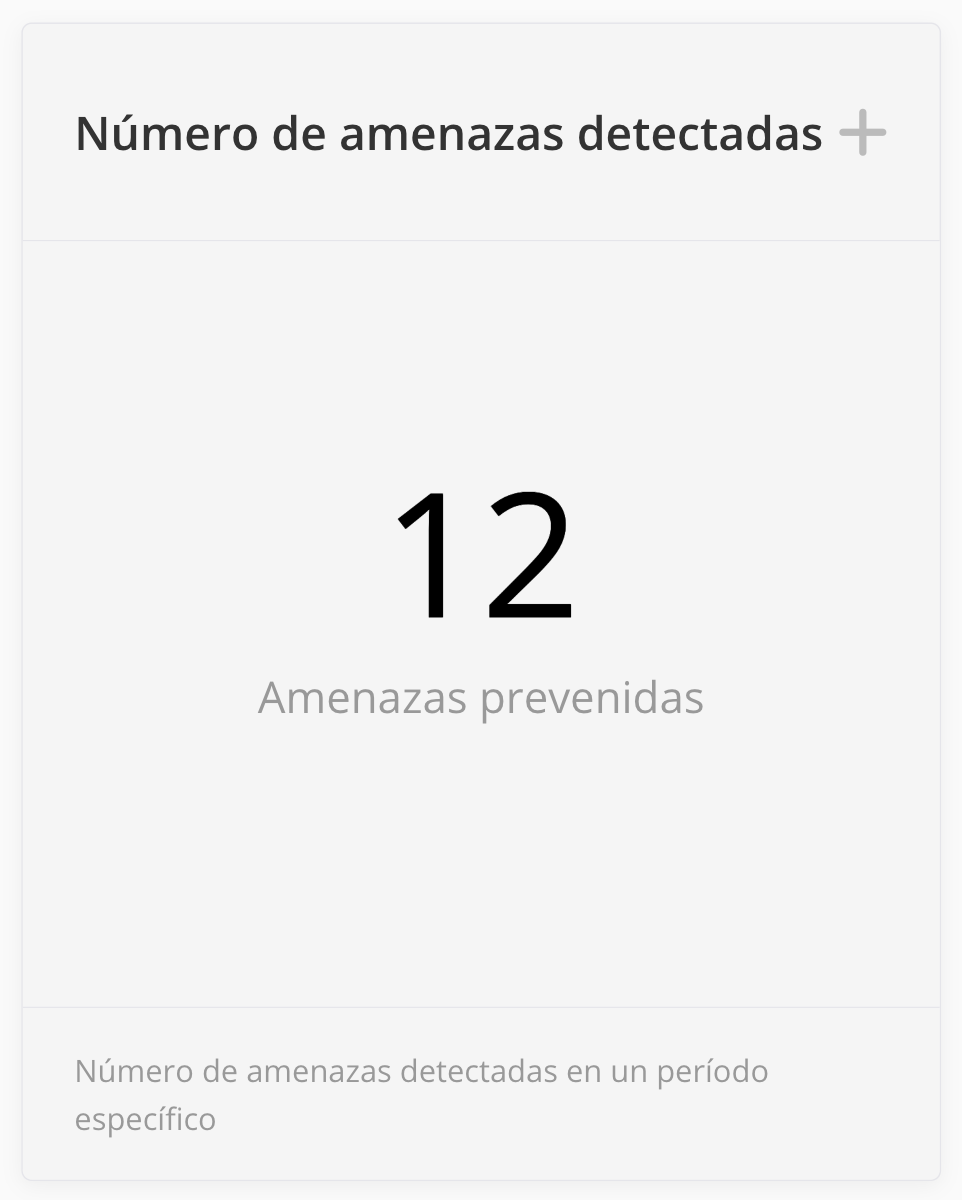 Widget que muestra la cantidad total de amenazas detectadas registradas en RecMan. Se muestran todos los tipos de amenazas de la base de datos en el widget. Los mismos datos se muestran en el widget "Amenazas detectadas por tipo".