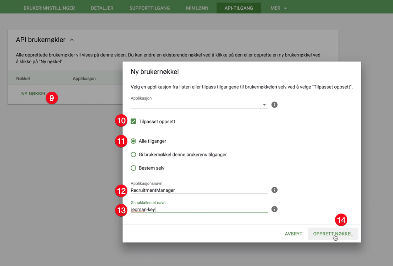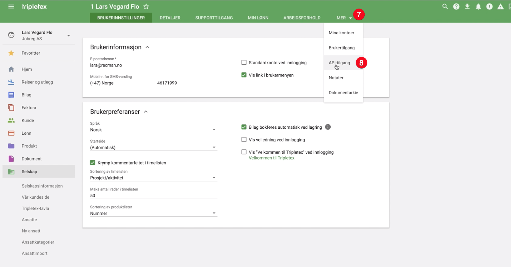 Lo primero que debe hacer es crear una clave API en Tripletex. Para acceder a estas funciones en Tripletex, debe tener acceso de administrador.