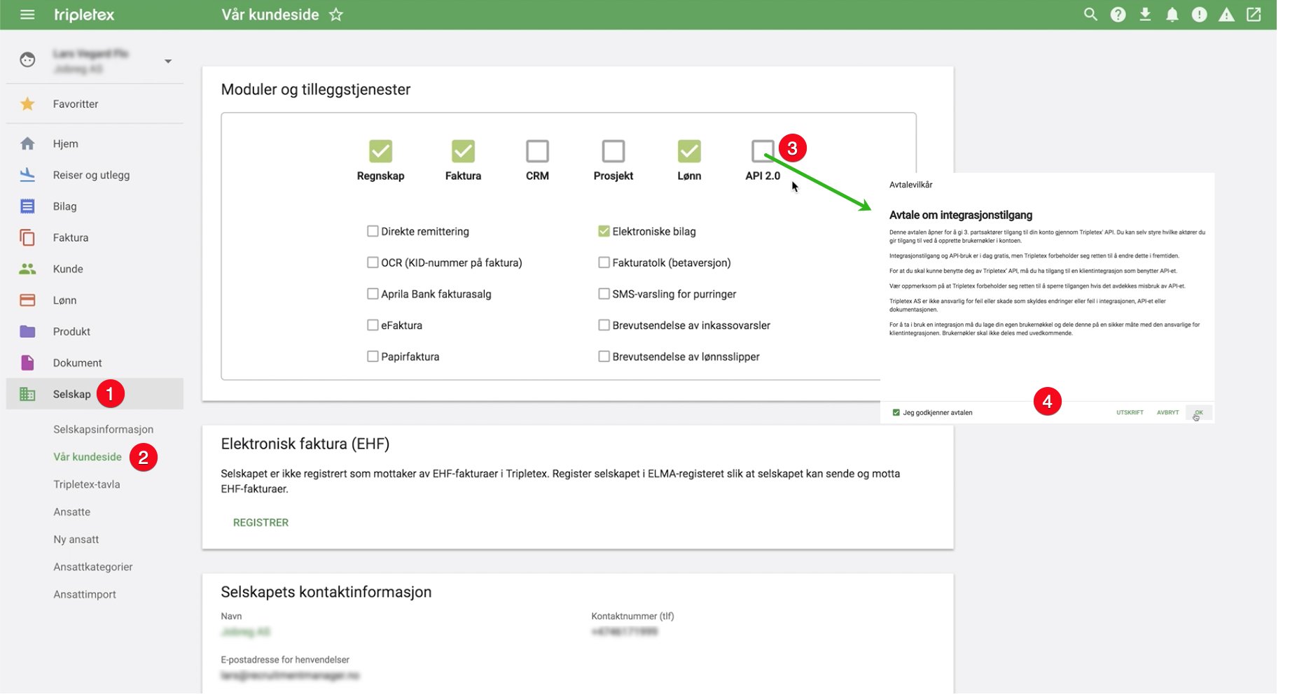 Configuración en Tripletex (paso 1)