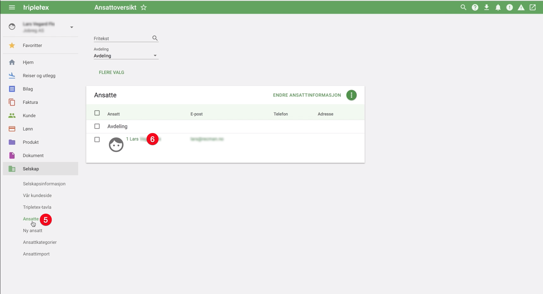 - Toque Empresa en el menú principal de Tripletex.