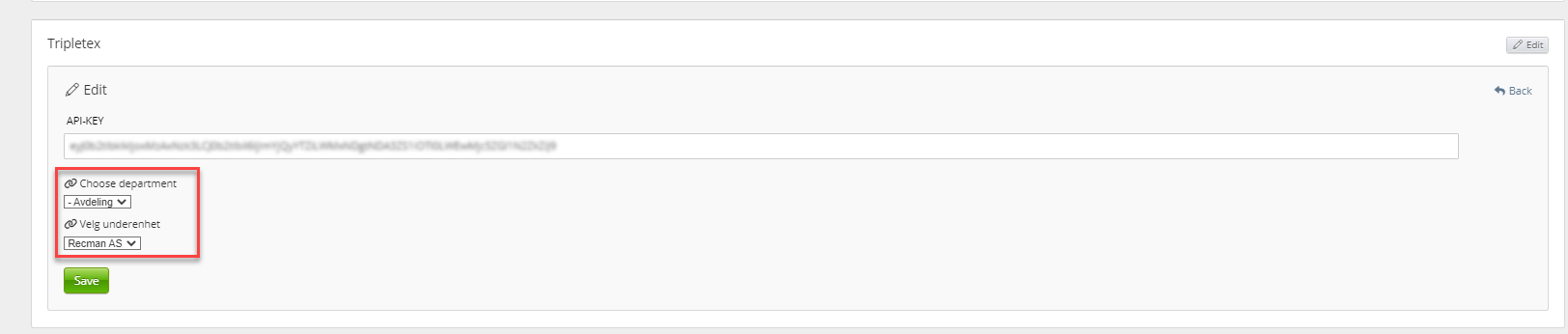 - Ingrese la clave API de Tripletex.
