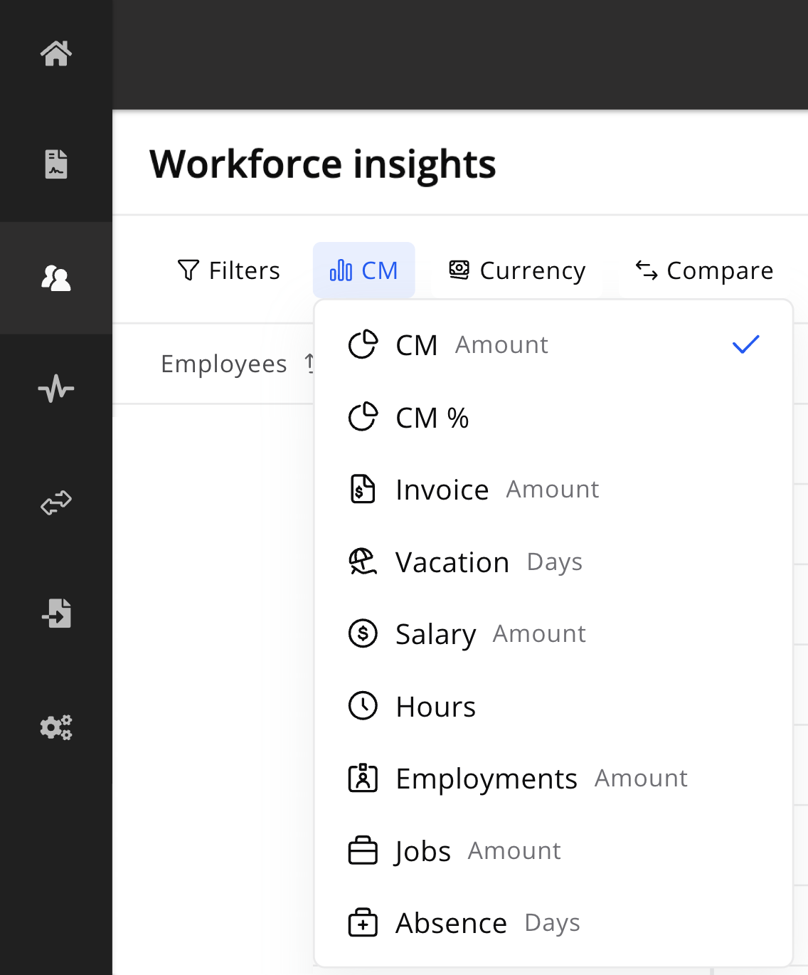 Perspectiva sobre la Fuerza Laboral permite la proyección futura de datos financieros y operativos clave, como CM, CM %, salario, facturación y trabajo registrado. Esta herramienta ofrece una visión predictiva de gran valor que facilita una planificación más eficaz de los recursos y del presupuesto.