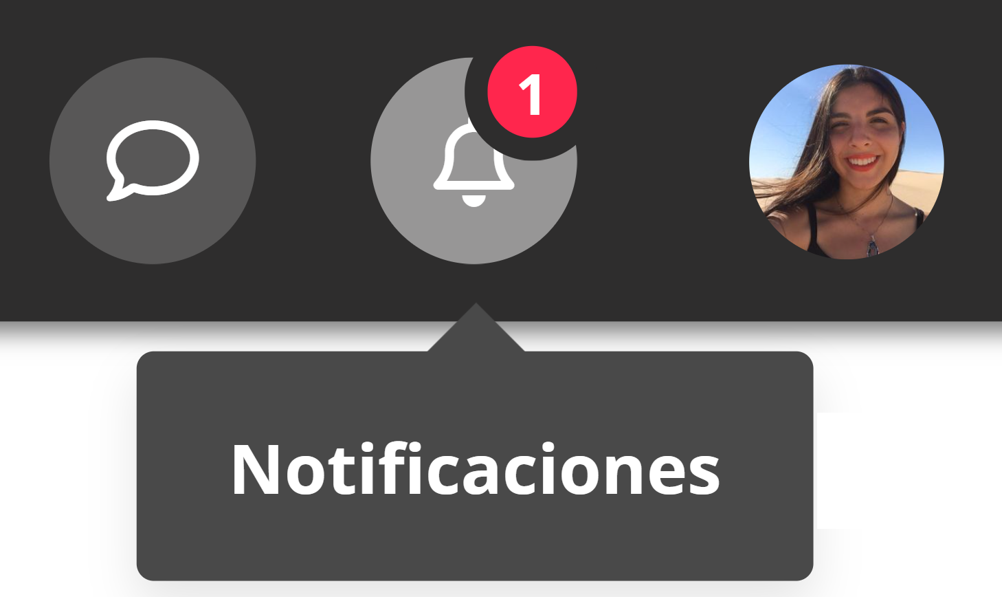 Para acceder a las notificaciones, haga clic en el ícono de la campana en el menú de la barra superior, junto a su foto de perfil: