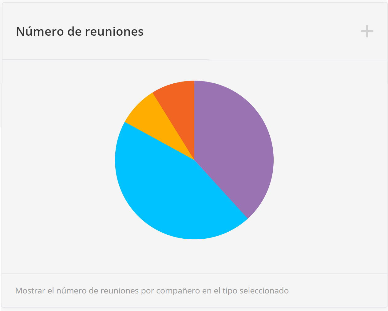 Muestra el número de reuniones realizadas por un compañero de trabajo en el tipo seleccionado. El valor del widget se muestra en varios tipos de gráfico de pastel (el tipo de gráfico se establece desde la configuración del widget).