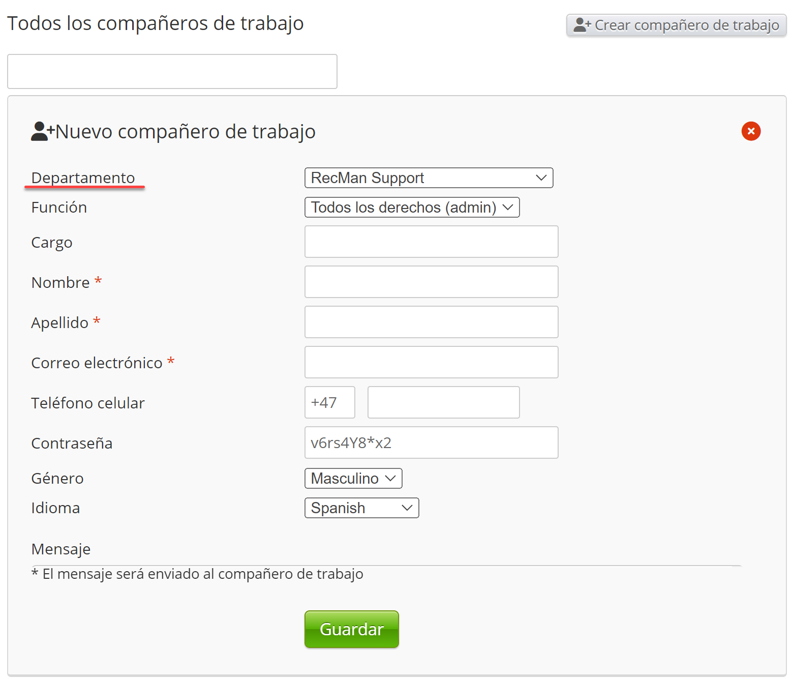 - Nombre del compañero de trabajo: si el cliente hace clic en el nombre, se dirigirá a RecMan.