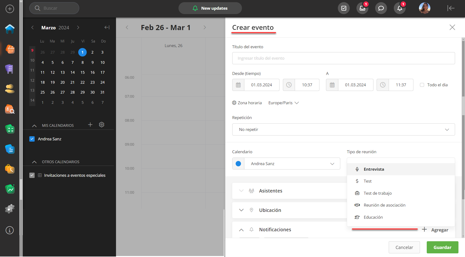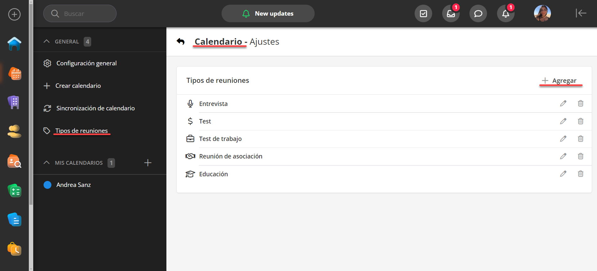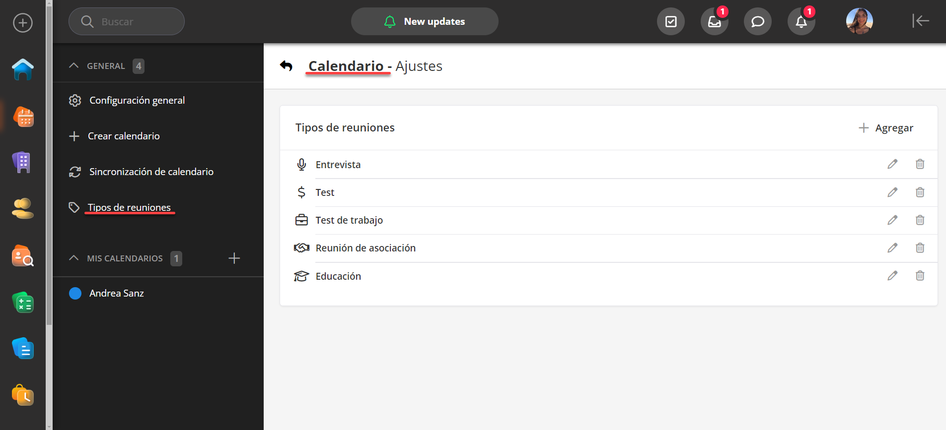 El tipo de reunión se puede configurar desde el calendario de RecMan:
